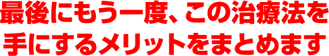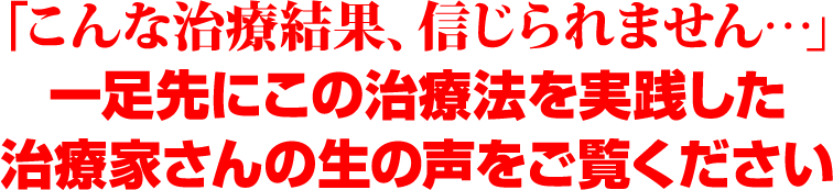 もし、ひとつでも当てはまるお悩みがあれば、これからお伝えするちょっと変わった治療法はまさに朗報です。