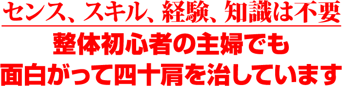 様々な手技を学んできましたが、その中でもこの施術は他にはない全く新しい発想で、とにかく即戦力になってくれます。 四十肩五十肩の改善はもちろん、腰痛、股関節痛、他にも色々と応用がききそうです。手に入れて損のない、万能な手技だと思います。