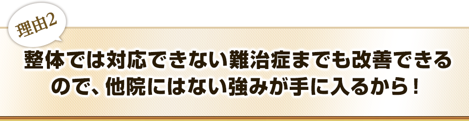 なぜなら、あなたがこの治療法を手に入れることで、今抱えている臨床の悩みを解消し、治療効果を大幅にアップすることができるからです。