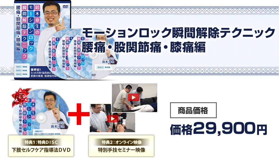 【四十肩・五十肩編】、【腰痛・股関節痛・膝痛編】を、それぞれ29,900円で公開してくださいました。