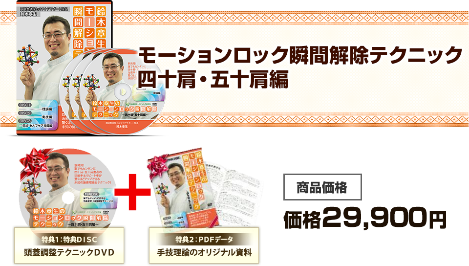 今回お届けするプログラムには、鈴木先生がモーションロック瞬間解除テクニックを開発するまでに、長年培ってきた経験や知識が凝縮されています。
