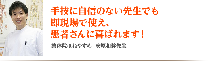 この手技を新しい手技として、メニューに加えて頂く考え方を持たれるとすごくいいと思います。