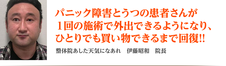 僕が一番驚いたのはパニック障害、うつ症状の女性の患者様です。