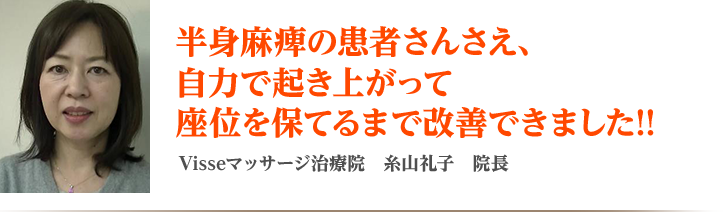 たとえば半身麻痺で自力で起き上がれなかった患者さんに施術をしたら、拘縮が取れて、自力で起き上がって座位が保持できるようになりました。あとは若い女性で四肢麻痺で常に半身に痛みと痺れがある患者さんに、週一回ぐらい頭蓋と首に対して施術を続けていたら、痛みを取ることができました。