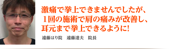 臨床でも試したところ、四十肩五十肩の施術で行き詰りを感じていた中で、光を感じました。
