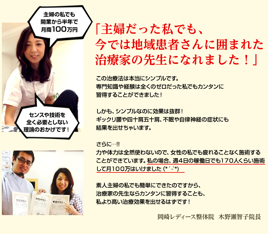 治療効果も驚く程高いので、治療家仲間に自身を持って紹介できますね。
